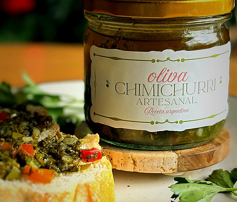 En Oliva Chimichurri Artesanal cada frasco guarda la esencia del asado argentino con aceite de oliva extra virgen y vegetales frescos que despiertan los sentidos.